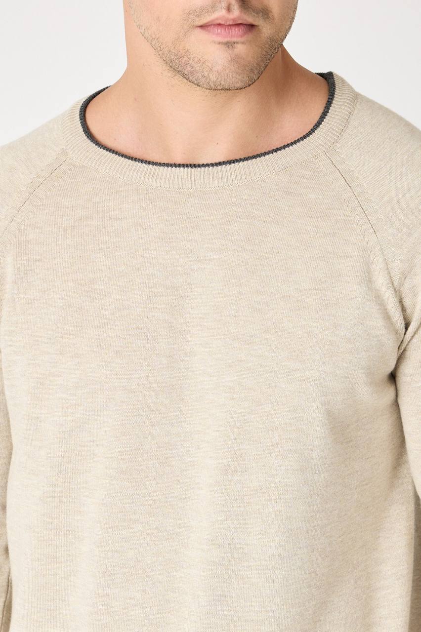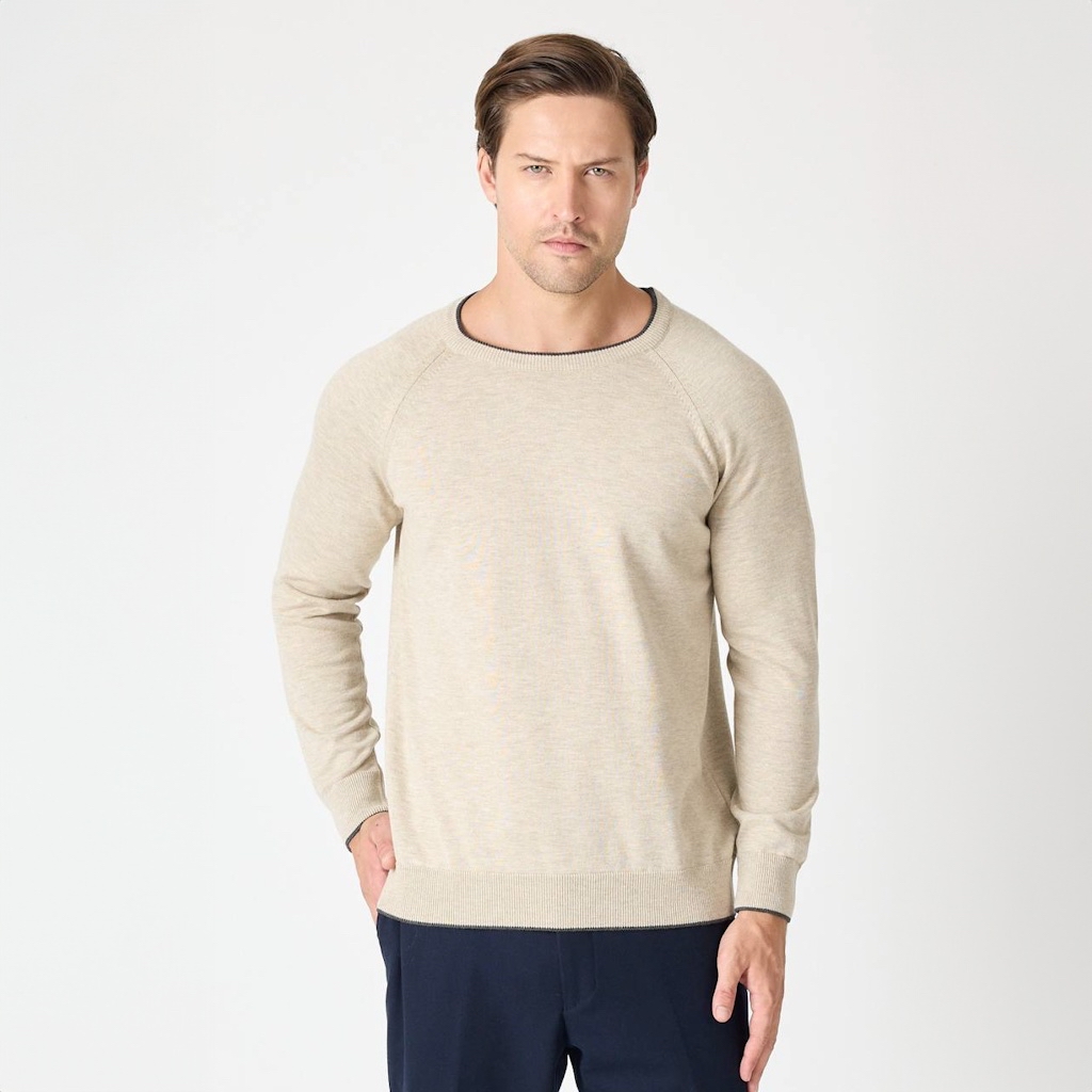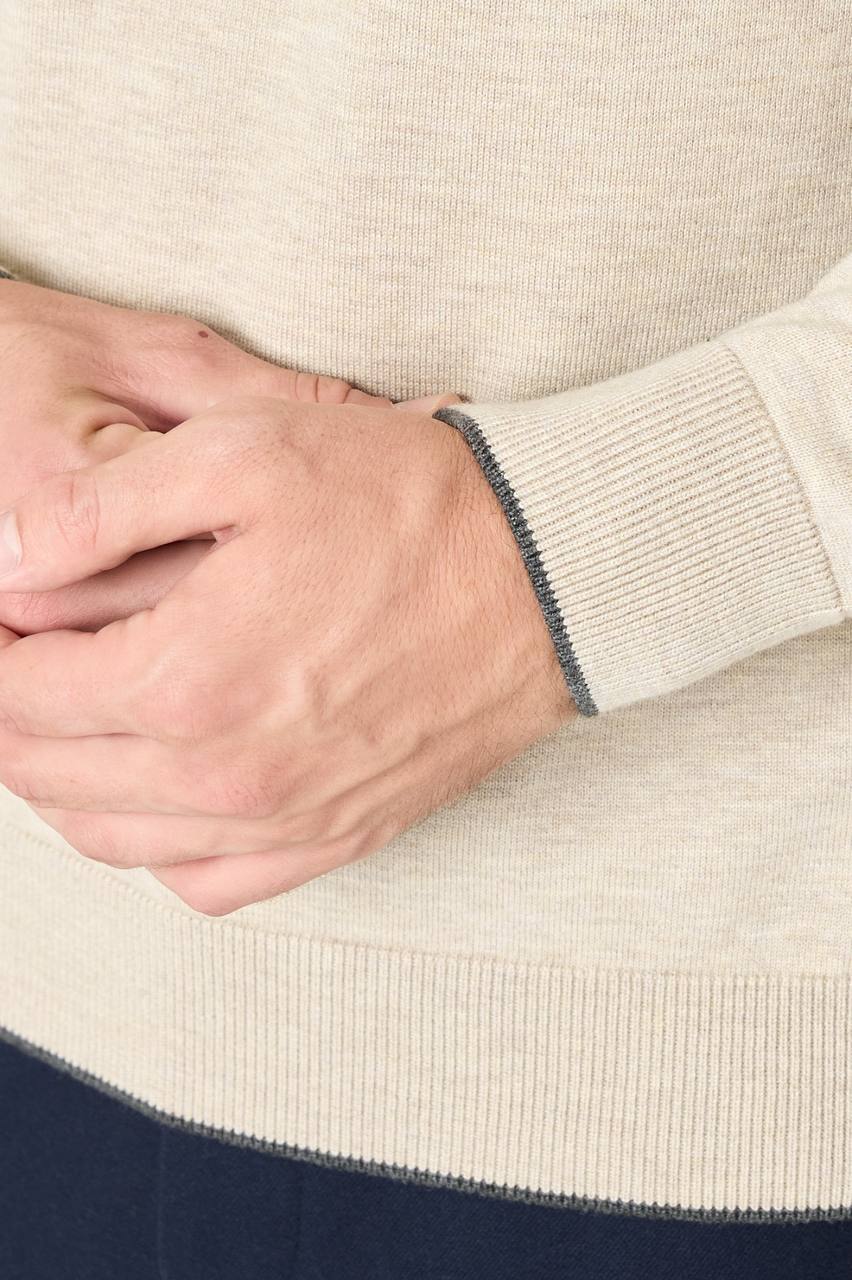 Light Beige Crew Neck Sweater with a Grey Trim
